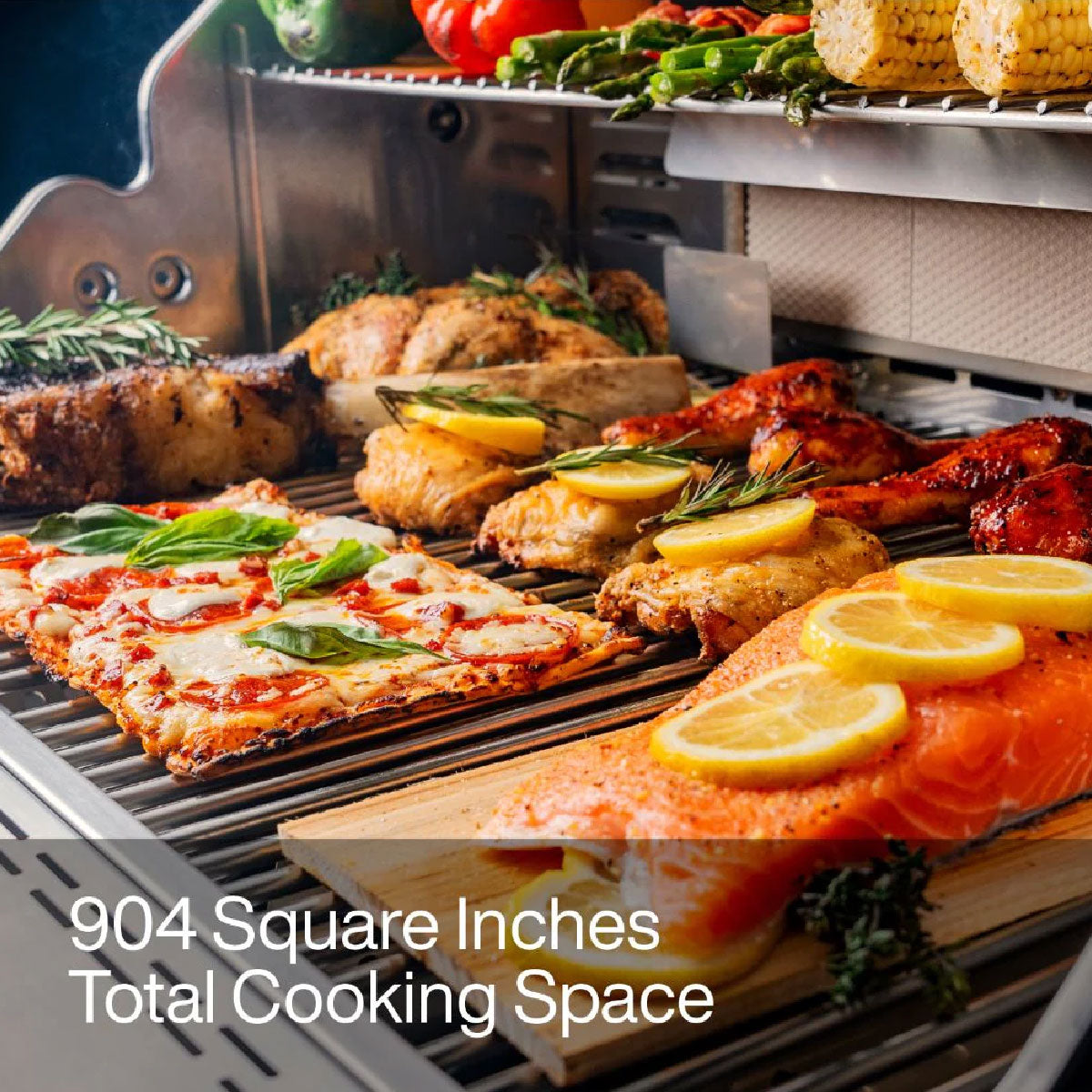 - Área de cocción de 237.5 cm² (904 pulgadas²): espacio suficiente para preparar comidas para toda la familia o reuniones al aire libre.