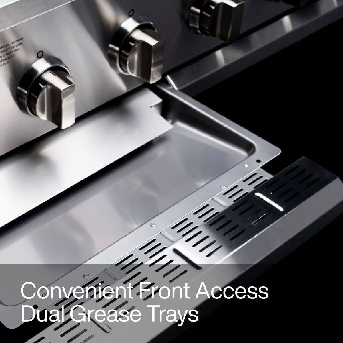 - Sistema de evacuación de grasa Dual: limpieza fácil con 2 bandejas frontales removibles.